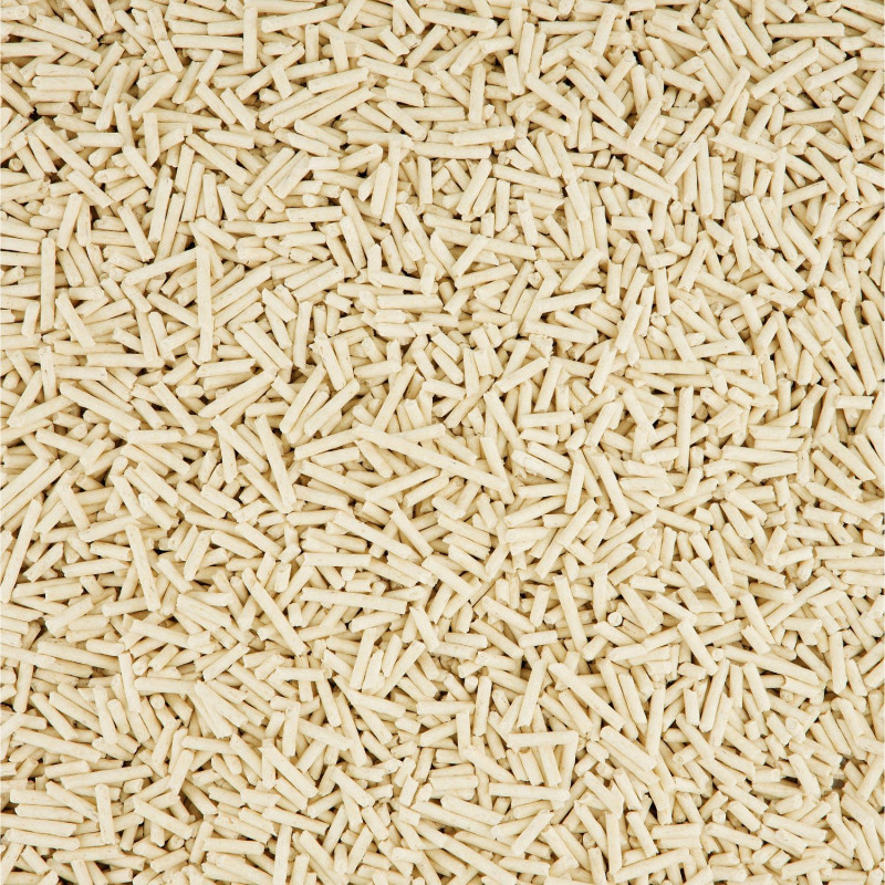 Maíz triturado en pélets, aglomera excrementos y neutraliza olores, biodegradable. Disponible en dos presentaciones: 6 y 17,5 litros.