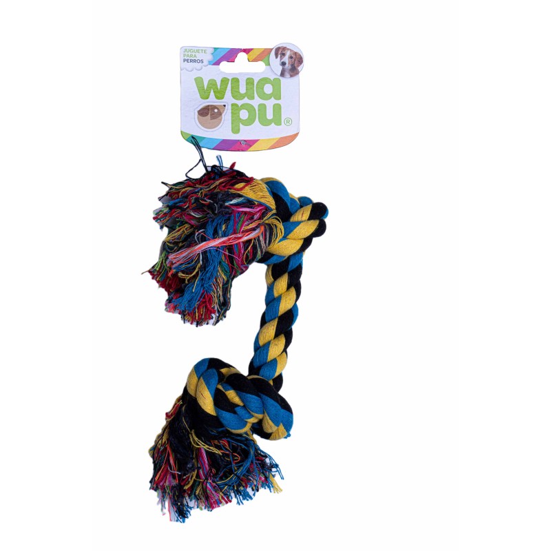La Cuerda Nudo Color de Wuapu es el juguete mordedor perfecto para perros que buscan diversión y cuidado dental al mismo tiempo. Fabricada con cuerdas de algodón de colores, no solo es resistente y duradera, sino que también es segura para tu mascota. Los nudos en ambos extremos añaden interés y desafío al juego, ayudando a limpiar los dientes y a masajear las encías de tu perro mientras juega, actuando como una seda dental natural. Este juguete es ideal para razas grandes, proporcionando horas de entretenimiento y ejercicio físico. Disponible en cuatro tamaños diferentes, la Cuerda Nudo Color se adapta a todas las necesidades y preferencias, haciéndola un accesorio indispensable para la caja de juguetes de tu perro.