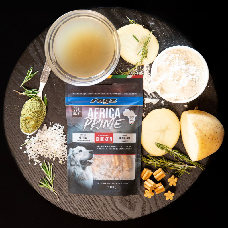 ROGZ Snack de pollo es un snack semihúmedo y sabroso, ideal para utilizar como premio durante el entrenamiento o como recompensa diaria. Elaborado con ingredientes de calidad y saborizantes y colorantes naturales, ofrece una alta palatabilidad que encanta a los perros.